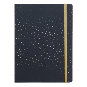 S tímto plnitelným zápisníkem Filofax Notebookem A5 z naší kolekce Confetti v provedení Charcoal bude každý Váš den mimořádný. Zápisník obsahuje pevné laminované kartonové desky s detaily ze zlaté fólie a vzorovanou vnitřní stranou desek. Jeho zlatá dvoudrátová vazba umožňuje Notebooku ležet úplně rovně a barevně sladěné elastické zavírání vám pomůže udržet vše na svém místě. Uvnitř zápisníku najdete linkované stránky vhodné i pro plnicí pera. Stránky můžete libovolně přemísťovat a nebo doplňovat. To Vám umožní vytvořit si zápisník, který opravdu vyhovuje Vašim potřebám. Využít navíc můžete naši širokou nabídku náplní a příslušenství.