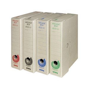 ekonomická varianta klasického archivního boxu EMBA, provedení hladká lepenka 800g / m2, kvalitní potisk sítotiskem, konstrukční řešení umožňuje rychlý přístup k dokumentům, dodávané v rozloženém stavu po 25 kusech ve fólii