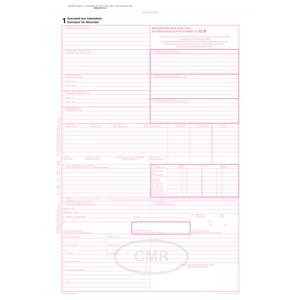 náležitosti dle Úmluvy o přepravní smlouvě v mezinárodní silniční nákladní dopravě, samopropisovací (NCR), číslovaný, formát A4 na výšku, obsahuje 5 listů odtržitelných perforací v horní části, anglický a francozský překlad na rubové straně tiskopisu, minimální odběr 100 ks