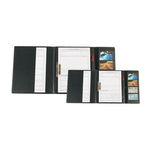 pevné trojdílné desky pro řidiče, desky mají uvnitř kapsu pro uložení dokumentů a kapsy na CCS kartu, vizitky atd., dále jsou vybaveny rychlosvorkou pro snadné uchycení dokumentů a poutkem na tužku, povrch plastik barva černá