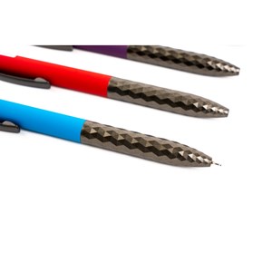 kovové kuličkové pero, stiskací mechanismus, dotykový hrot pro smartphony, tablety a dotykové notebooky s technologií kapacitních displajů, strukturovaná úchopová část pro pohodlné držení, vyměnitelná náplň F-411, inkoustu semi-gel pro příjemné psaní