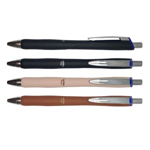 kuličkové pero se stiskací mechanikou a matnou povrchovou úpravou, kovový klip a tvarovaný pogumovaný úchop s drážkami, jedinečná náplň Easy Ink – inkoust s nízkou viskozitou pro pohodlnější a plynulejší psaní, vyrobeno ze 70 % recyklovaného plastu, šířka stopy 0,5 mm, modrá náplň, náhradní náplň S0297 (obj.číslo: 240801) , mix barev: béžová, hnědá, černá
