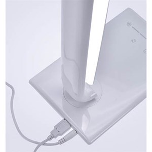 možnost volby 5 barev světla – teplá, neutrální bílá, bílá a studená bílá (3000K-6000K), stmívatelná - plynulá regulace jasu, dotykové spínání, maximálně flexibilní - ohebné rameno, otočná základna a náklopná hlava, příkon: max. 12W, světelný tok: max. 700lm, USB napájecí zdířka pro nabíjení telefonů (5V, 1000mA), USB kabel součástí, rozměry: cca 420 x 360 x 125mm, energetická třída: G