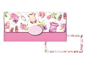 Dárková obálka na peníze s motivem pro miminka (holčičky). Udělejte novopečeným rodičům radost a věnujte jim obálku s penězi. Uvnitř je kartička bez textu, na kterou můžete napsat věnování.
