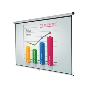 Zářivý matně bílý povrch plátna zaručuje ostrý, podrobný obraz, který zřetelně uvidí všichni diváci. Lze je snadno zasunout do pouzdra, aby bylo chráněno před poškozením, nebo uloženo, když není používáno. Doplňkové držáky umožňují instalovat plátno před popisovací tabuli nebo je sklonit směrem k divákům.