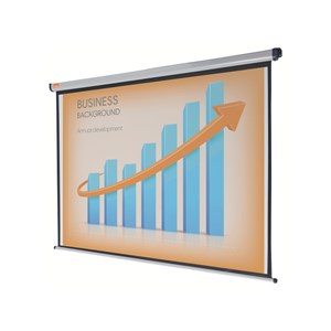 Zářivý matně bílý povrch plátna zaručuje ostrý, podrobný obraz, který zřetelně uvidí všichni diváci. Lze je snadno zasunout do pouzdra, aby bylo chráněno před poškozením, nebo uloženo, když není používáno. Doplňkové držáky umožňují instalovat plátno před popisovací tabuli nebo je sklonit směrem k divákům.