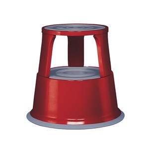 Pojízdná kovová kruhová stolička - červená