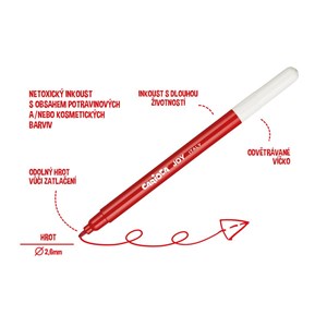 fixy Carioca, středně silný hrot ø 2,8 mm, kulatý tvar těla pro snadné držení dětí, odolný hrot proti zatlačení, dermatologicky testované, netoxické, bez lepku, snadno omyvatelné a pratelné, inkoust s dlouhou životností, jasné a zářivé barvy, odvětrávané víčko, vyrobeno v Itálii, obsah balení 288 ks, nevhodné pro děti do 3 let