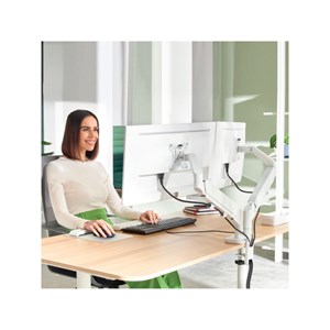 Duální rameno Leitz s certifikací IGR a TÜV zlepšuje držení těla, podporuje správné nastavení výšky očí a ulevuje krku a ramenům. Stabilní v jakékoli poloze, snadno přepíná mezi orientací na šířku a výšku. Ideální pro malé pracovní prostory – skládací, flexibilní a nastavitelné jednou rukou.