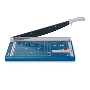Spolehlivá páková řezačka pro kancelář i školu. Vysoce kvalitní nože Solingen - spodní ostrý nůž a horní s plochým ostřím pro bezpečnou manipulaci. Přesný řez je zaručen ocelovým zpevněním přítlačného ramene. Určeno pro více druhů materiálů: papír, karton, textil, fotografie a fólie. Stabilní kovový stůl se zaoblenými hranami a neklouzavými pryžovými patkami. Natištěné úhly a DIN formáty usnadňují přesné vyrovnání řezaného materiálu. Dva příložníky s dělením v mm a nastavitelným zadním dorazem pro fixaci řezaného materiálu a přesný řez 90°. Vyměnitelný horní nůž s plochým ostřím. Manuální přítlak s integrovanou ochranou prstů pro bezpečnou fixaci řezaného materiálu. Praktické úchyty pro přenos. Ergonomicky tvarovaná rukojeť zajistí pohodlné řezání. Vyrobeno v ČR. Váha: 4,9 kg. Rozměr stolu: 575 x 285 mm. Délka řezu: 460 mm. Výška řezu: 1,5 mm. DIN: A3. Řezný výkon: 15 listů papíru (80 g/m2).