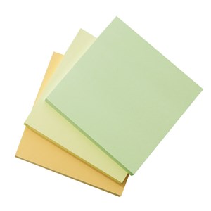 samolepicí bločky v mixu pastelových barev vyrobené z papíru, který pochází z ekologicky obhospodařovaných lesů, certifikovaný papír šetrný k přírodě využívá lepidlo na vodní bázi. lístky jdou snadno nalepit a odlepit, přesto skvěle drží, nezanechávají stopy po lepidle