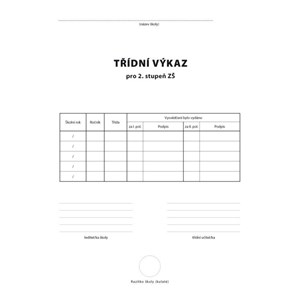 Kód: 122966 Dostupnost Třídní výkaz pro 2. stupeň A4 / 16 stran formát A4, stran 16 34,00 Kč bez DPH Množství: Přidat do košíku Podrobnosti formát A4, stran 16