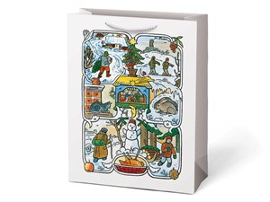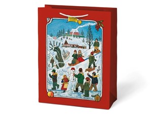 Papírová vánoční dárková taška s vánočními motivy Josefa Lady (bílá, červená, světle modrá, tmavě modrá). Každý dárek musí být v něčem zabalený. Pokud nemáte čas balit ho do balicího papíru, máme pro Vás na výběr nejrůznější dárkové tašky.Taška má pevné ucho pro snadné přenášení a štítek pro vepsání jména či přání.